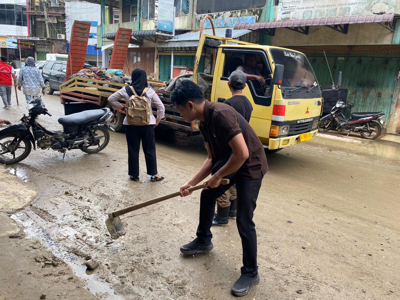 Diskominfo Kota Lhokseumawe Turut Serta dalam Gotong Royong di Keude Geudong Aceh Utara Pasca Banjir
